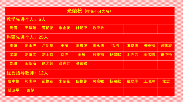 此次表彰大会上,周倩等6位教师荣获“教育先进个人”称号,李盼等25位教师荣获“科研先进个人”称号,曹中艳等12位教师荣获“优秀指导教师”称号。成人性爱影片