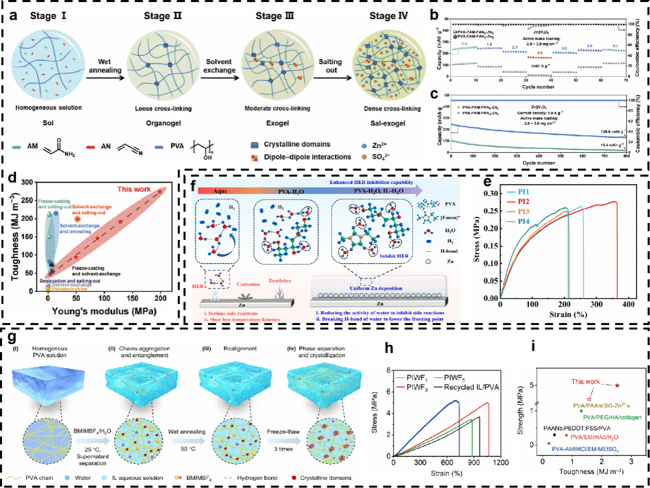 部分水凝胶电解质的制备流程图及其电化学性能测试