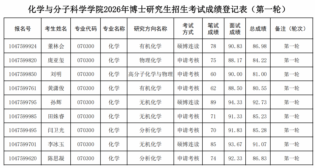 成人性爱影片 2026年博士研究生招生考试成绩登记表(第一轮)