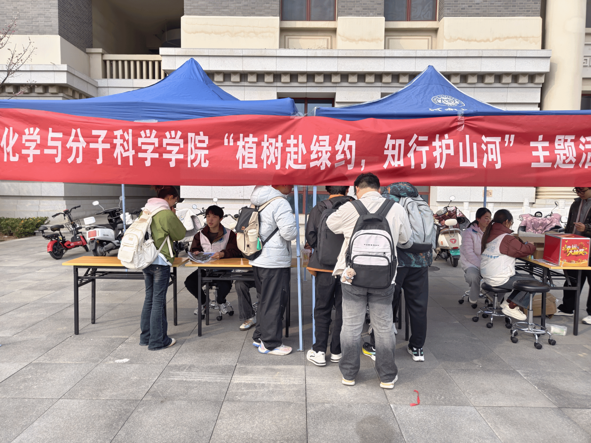 在金明、龙子湖校区设置科普摊位,科普宣传以随机抽题作答的形式开展互动。内容涵盖垃圾分类、绿植养护、生态保护等多个板块,贴合校园生活与环保热点。认树小挑战则通过展示松树、柳树、银杏等常见树木图片,考验同学们的植物认知能力。摆摊现场人气高涨,同学们踊跃答题。该活动不仅加深了同学们对环保理念的理解,更是推动了生态文化理念落地生根,使环保意识在互动中自然深化。