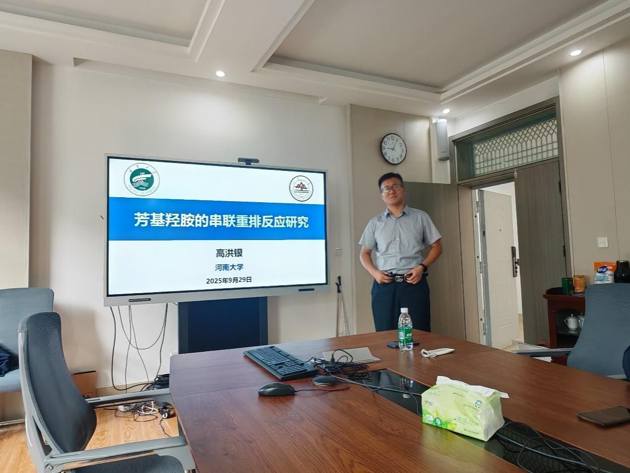 邀请,宁夏大学高洪银教授在241会议室进行一场题目为“芳基羟胺的串联重排反应研究”的学术报告。本次报告由徐尤智教授主持。