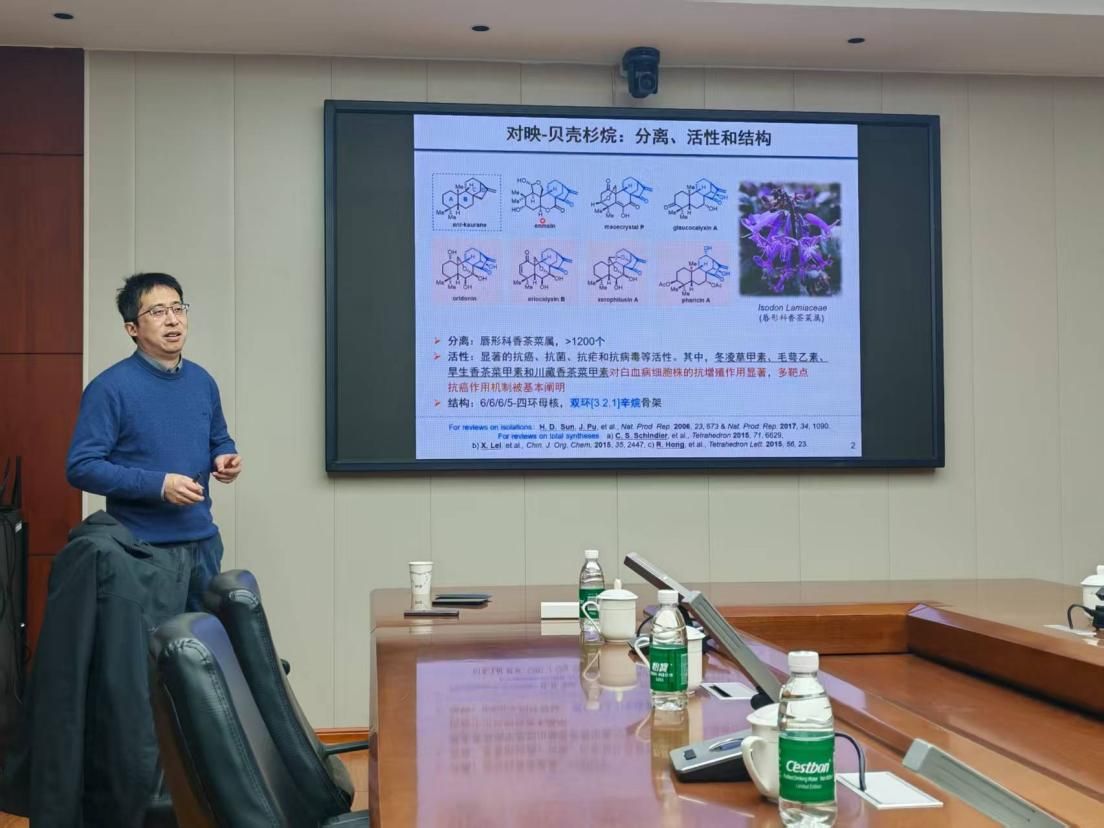 220会议室作了题为“去芳构化策略驱动的天然产物全合成”的学术报告,本次报告由执行院长徐元清主持。